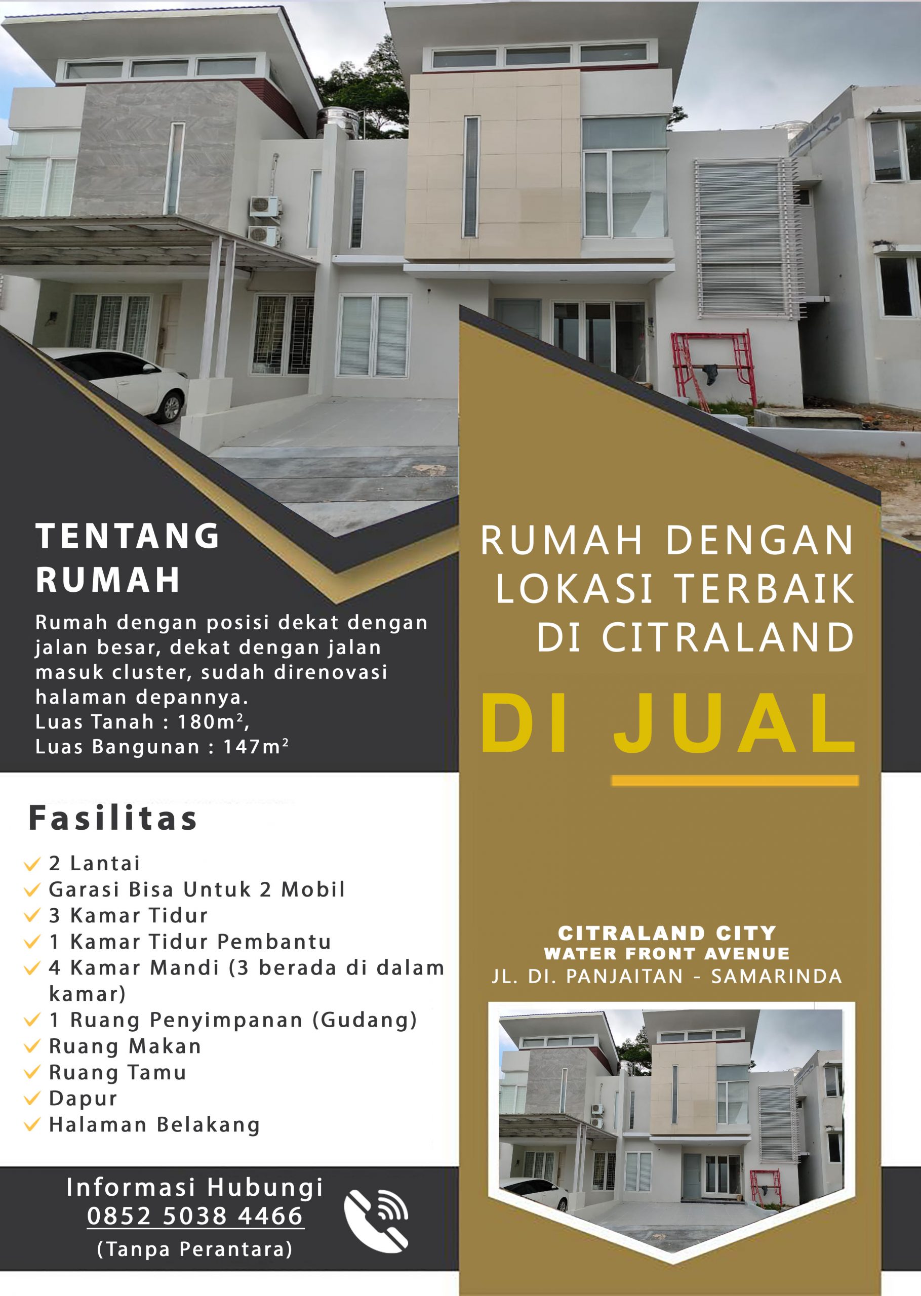 Rumah satu-satunya di Citraland dengan posisi hook dan view terbaik…